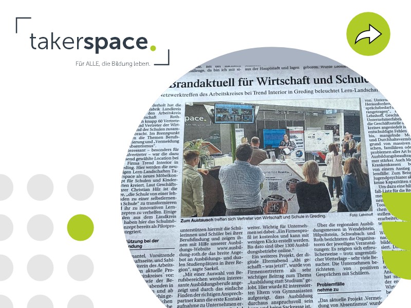 Es ist eine Entwicklung „made in Greding“ – und sie zieht weite Kreise. Das Schulmöbelkonzept „Takerspace“ aus dem Hause Trend Interior, befindet sich zwar noch in der Testphase,